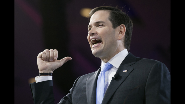 The Florida senator got loud cheers from an audience at a conference of conservatives outside Washington.