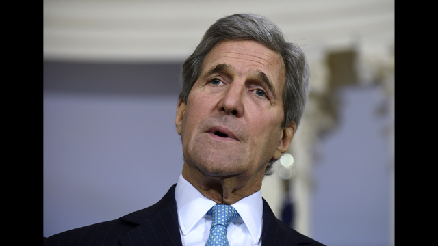 As the Syrian civil war enters its sixth year, Kerry reaffirmed the "determination" of the U.S.-led coalition against the Islamic State group in Iraq and Syria, "to defeat this barbaric organization."