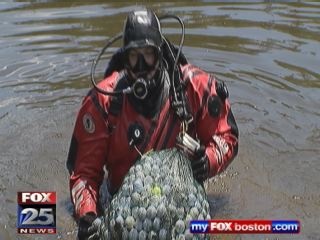 The way Forest sees it, your pain is his gain. A bad day out on the golf course for you translates into a great day at the office for him. We caught up with Forest and his assistant, Mike, at Overlook Country Club in Hollis, New Hampshire. It is an old course that hadn’t been cleaned out in a while and reaped quite a harvest. “On a decent day, we’re happy if we can pull about 3,000 balls. Today, was somewhere in the 9,000 range,” Rothchild says. Yes, all 9,000 golf balls will make their way to Texas where they are sorted, cleaned and repacked as recycled Reload balls. The Texas company pays the course and the diver 7-12 cents per ball depending on its make and condition, so the harder you work, the more you get paid. But the job requires a lot of heavy lifting. “When I fill to full capacity, that’s about 900 balls, so again at ten balls per pound, that’s a 90 pound bag right there,” Rothchild says. Murky ponds, don’t do him any favors either. “I may be able to float in the water, my hands are going to be wrist deep, sometimes elbow deep in muck, just feeling around and some of us we call it brail diving cause literally it’s just by feel, and you can not see anything as you’re working your way through the water,” Rothchild says.