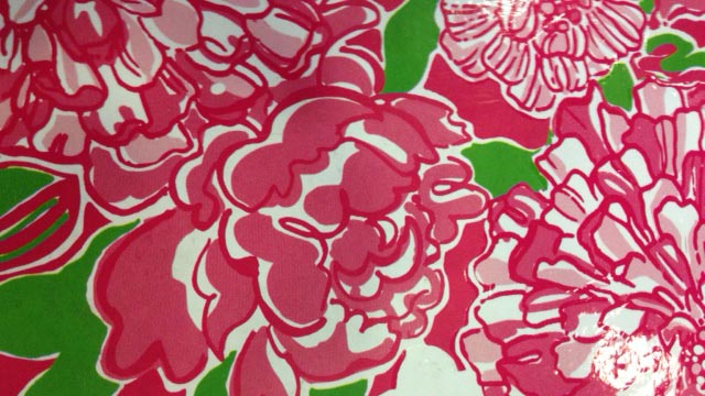 The signature Lilly palette features tongue-in-cheek jungle and floral prints in blues, pinks, light greens, yellow and orange — the colors of a Florida vacation.