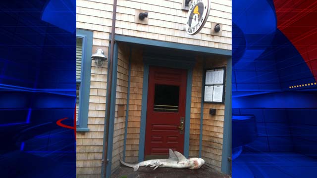 NANTUCKET, Mass. (AP) - A cleaning crew has found an unexpected mess after arriving at Sea Dog Brew Pub on Nantucket: a 5-foot-long shark blocking the door.