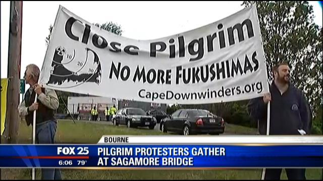 MyFoxBoston.com) -- Protesters gathered near the Sagamore Bridge Monday to highlight safety concerns about the Pilgrim nuclear power plant.