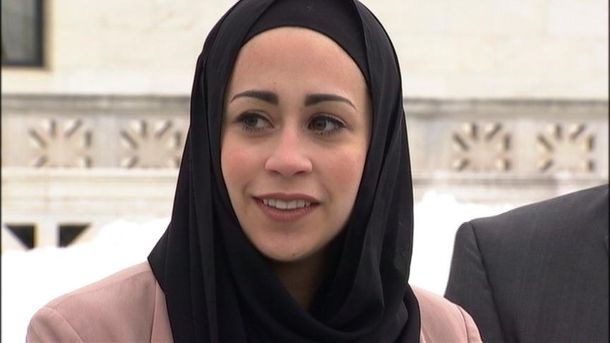 Monday, Elauf came to the Supreme Court wearing the same kind of headscarf she was wearing during the interview. A government spokeswoman read a statement Elauf wrote.