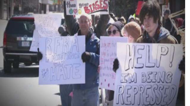 The law is called the Religious Freedom Restoration Act and opponents says it's aimed at legalizing discrimination against gays and lesbians.