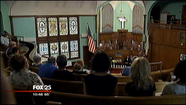 One thousand miles from the historic black church in Charleston where nine people were killed during Bible study, congregations across Massachusetts held vigils in honor of the victims. West Medford Baptist Church opened its doors on Saturday afternoon for an "interfaith prayer vigil for peace and justice." The Mystic Valley NAACP helped organize the service that filled the pews. "We prayed, we sang, we cried, we lit our candles," said Valerie David. "I think the turnout was wonderful. I'm glad that I came out to be a part of this." Pictures of the victims surrounded the altar as church leaders spoke not only of honoring the lost lives, but also of showing compassion for 21-year-old alleged gunman and white supremacist, Dylann Roof. "You can forgive, but you don't forget," said Shirley Rice, who attended the vigil. "It's better to love than to hate." Pastor Cindy Jacobsen opened Woburn's Lutheran Church of the Redeemer all afternoon for a personal vigil, leaving out candles and a "book of remembrance" for worshippers to sign and send to Charleston. "We, as a congregation and as a community, stand with them to fight racism," Jacobsen said. The small Woburn church will open its doors again before Sunday morning service to continue the vigil.